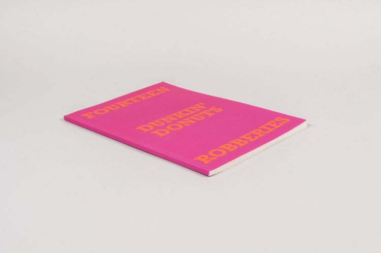 Each publication of this series features fourteen news articles on robberies that took place in different fast-food restaurants in the US, offering “an up-to-date portrait of US society through the prism of two of its most enduring obsessions: food and guns” (blurb on Lulu). The covers mimic the design of Edward Ruscha’s famous Twentysix Gasoline Stations, but with a different color set for each volume, featuring one of the fourteen following fast-food restaurants: Baskin-Robbins, Carl’s Jr, Chick-Fil-A, Chipotle, Dairy Queen, Dunkin’ Donuts, In-NOut Burger, Krispy Kreme, Papa John’s, Popeyes, Taco Bell, Wendy’s, Whataburger, Wingstop.