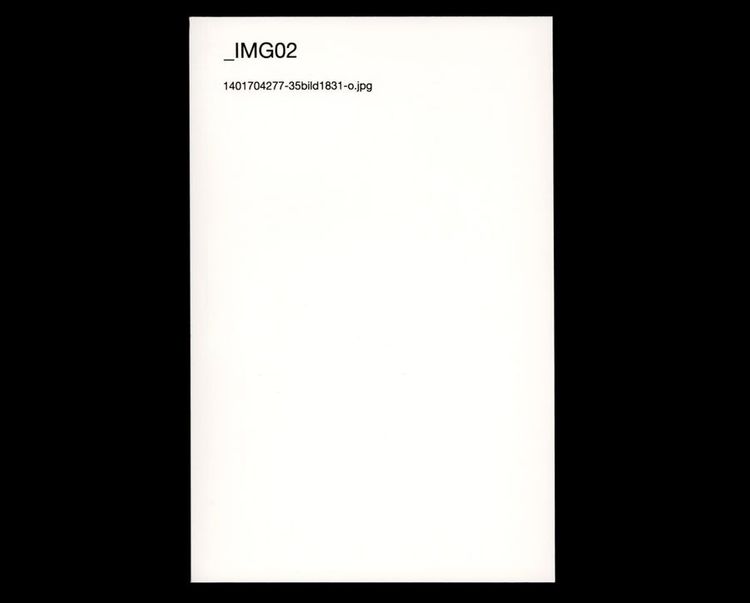 _IMG is a series of two books to date that present “the digital binary data of historical photographs as literature,” as the blurb on the artist’s website claims. Each book is based on a pre-digital photograph that was digitized, compressed as a .jpg, and archived by an official source. Mishka Henner opened the image file with a text editor and used the resulting ASCII character sequence as content for his book. Even though the resulting text is a hybrid that is no longer machine-readable nor readable for humans without the help of interpreting tools, the books nonetheless show the amount of characters necessary to define the picture. They also work as analog containers for saving data that could be used to recreate the files for displaying the images.